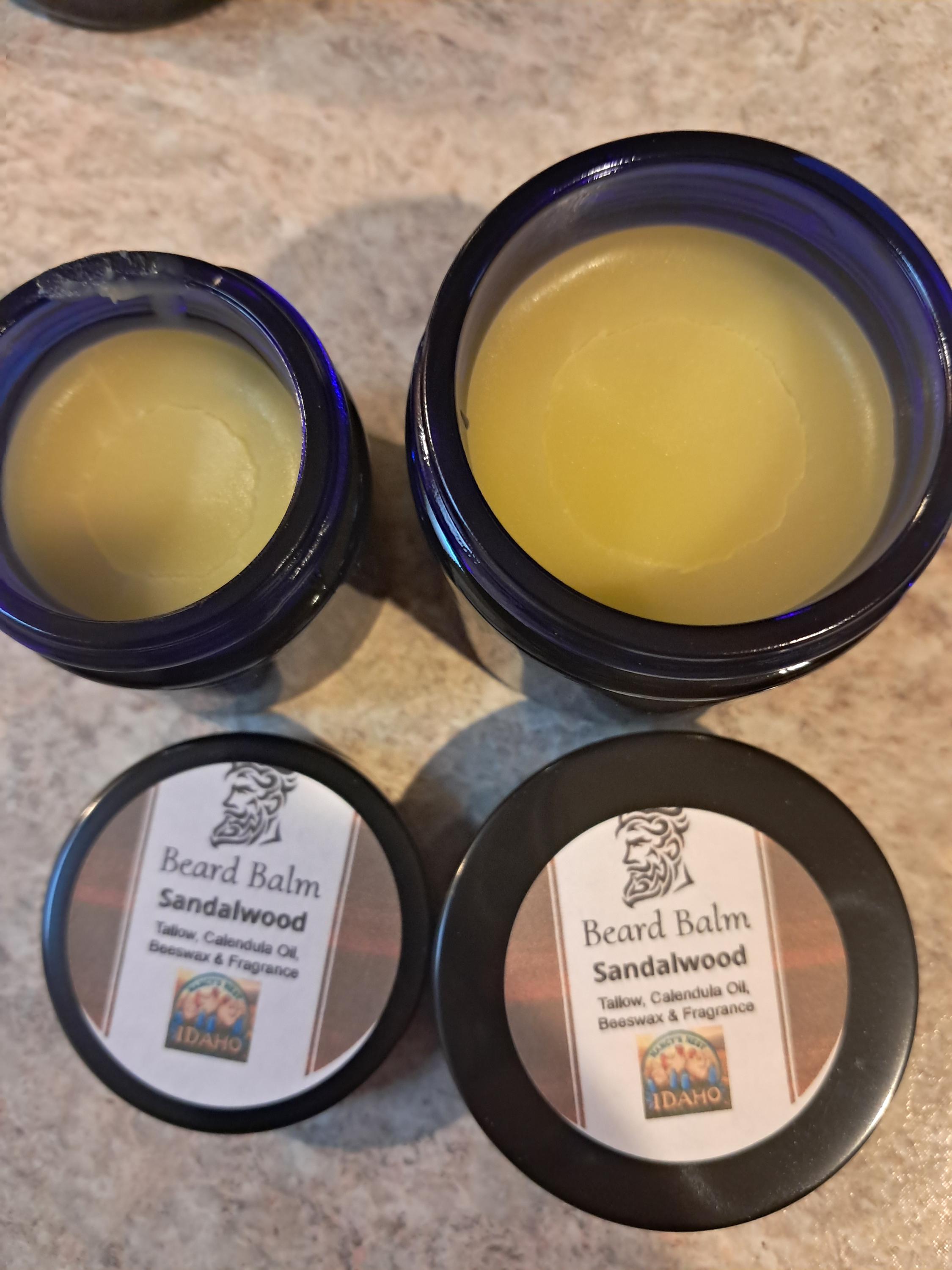 Homemade beard salve, also known as beard Balm or Butter, is a conditioning and styling product for beards. Ours are made with all organic natural ingredients: oils, butters, and locally sourced beeswax.